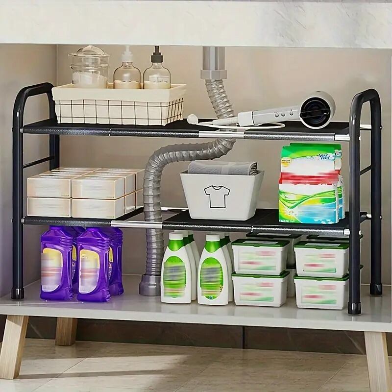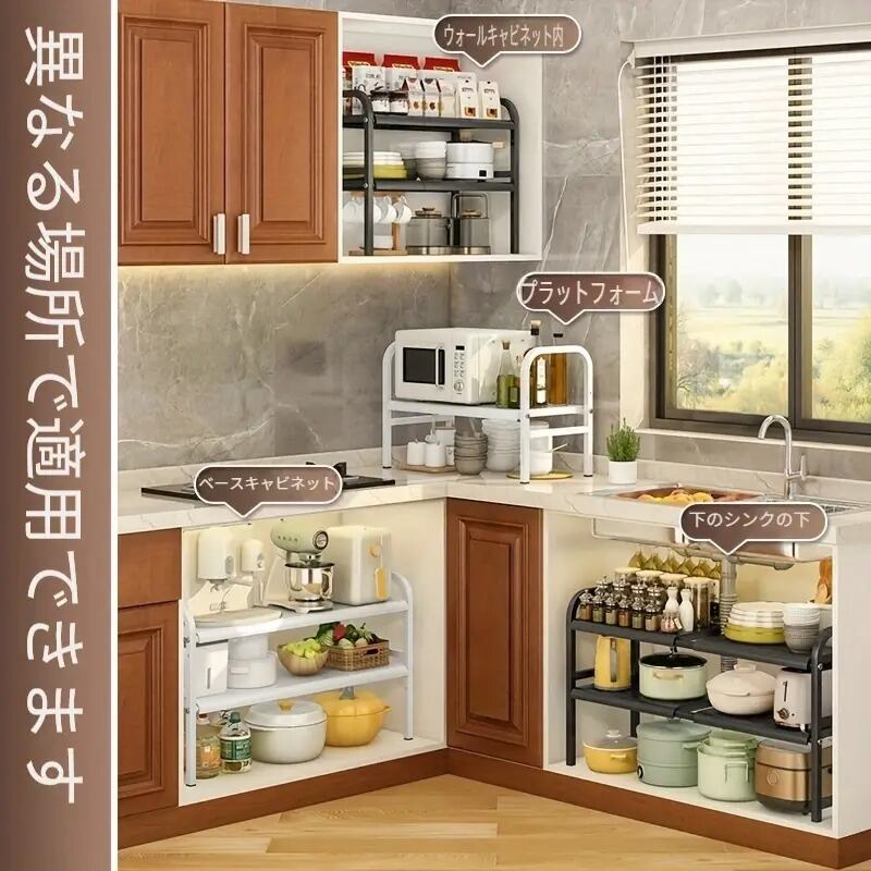 スッキリ収納できる2層ボード&4枚バスケットラックで、キッチンや洗面所を快適に整理しましょう!