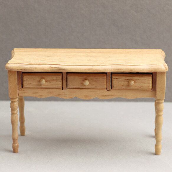 温かみのある木の質感とアンティーク風のデザインが魅力のミニチュアデスクです。小さな引き出しが3つ付いており、精巧な作りがミニチュア家具としてのリアルさを引き立てます。