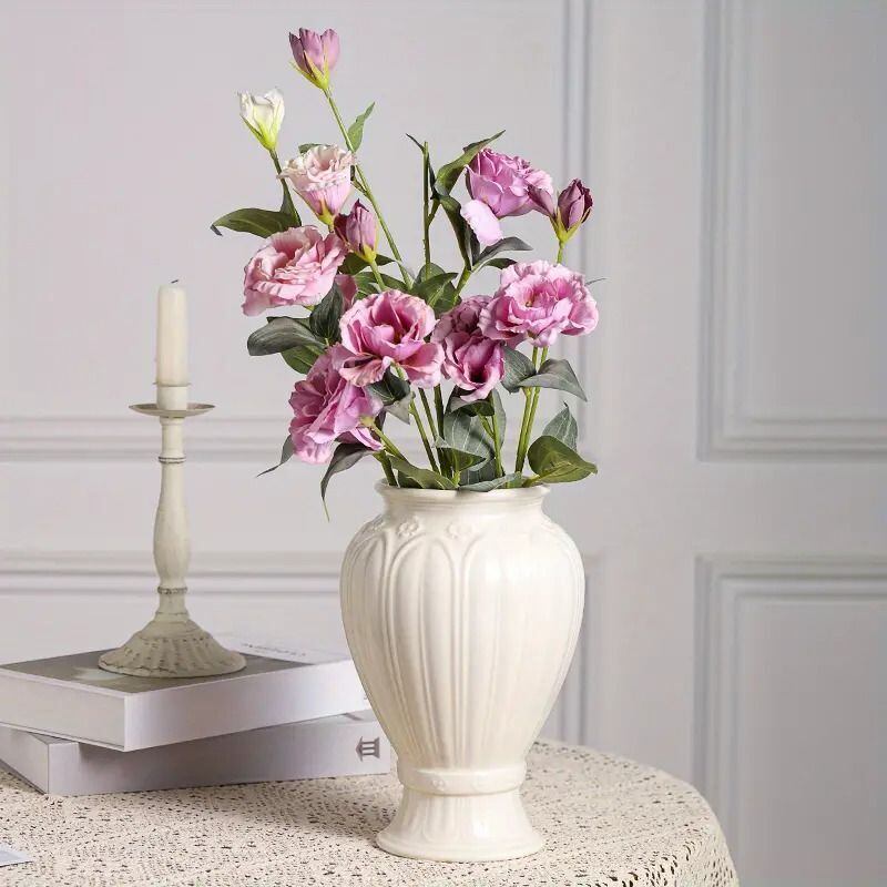 花瓶 陶器 かわいい オシャレ アンティーク ビンテージ インテリア 高級 職人技 生花 セラミック 牡丹 ライト ロマンチック リビングルーム クリーム色 | Renatus インテリア 家具専門店