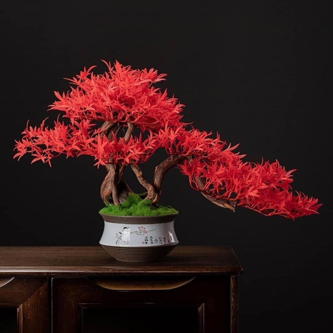 赤いカエデの葉を持つ盆栽は、室内装飾の中でも人工盆栽や人工観葉として人気があります。