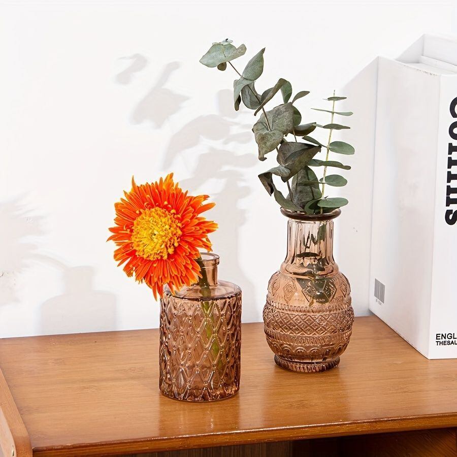 花瓶個10個セット ブラウン 茶色の花瓶 ヴィンテージクリアガラスの花瓶 ホームテーブルの装飾 センターピース用 小さな花瓶 素朴なウェディングデコレーション マルチサイズ | Renatus インテリア 家具専門店