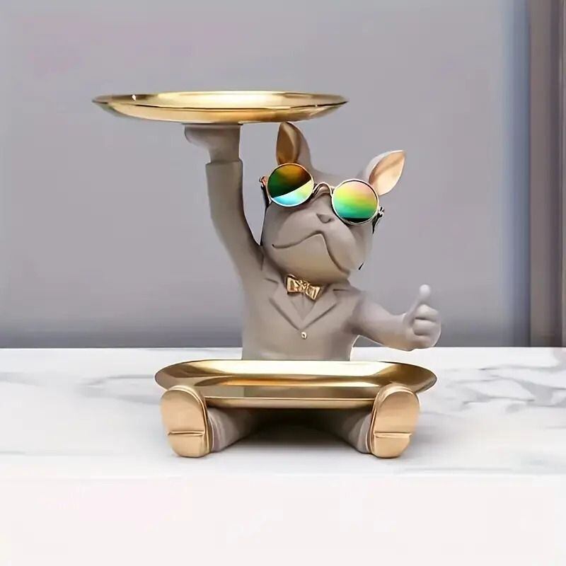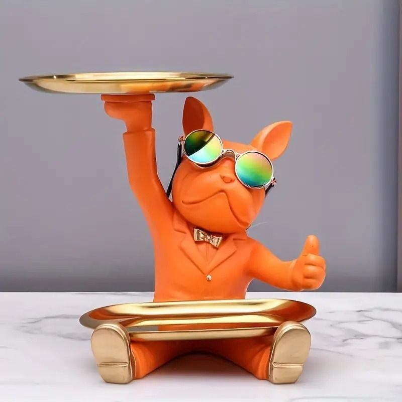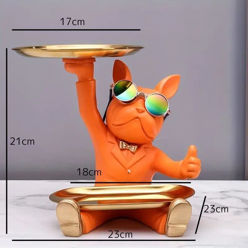 置物 犬 犬の像 ブルドック いぬ 彫刻 トレイ ホーム 玄関 リビング テーブルデコレーション 飾り 装飾品 かわいい 橙 オレンジ ベージュ クリスマスプレゼント 誕生日 ギフト | Renatus インテリア 家具専門店