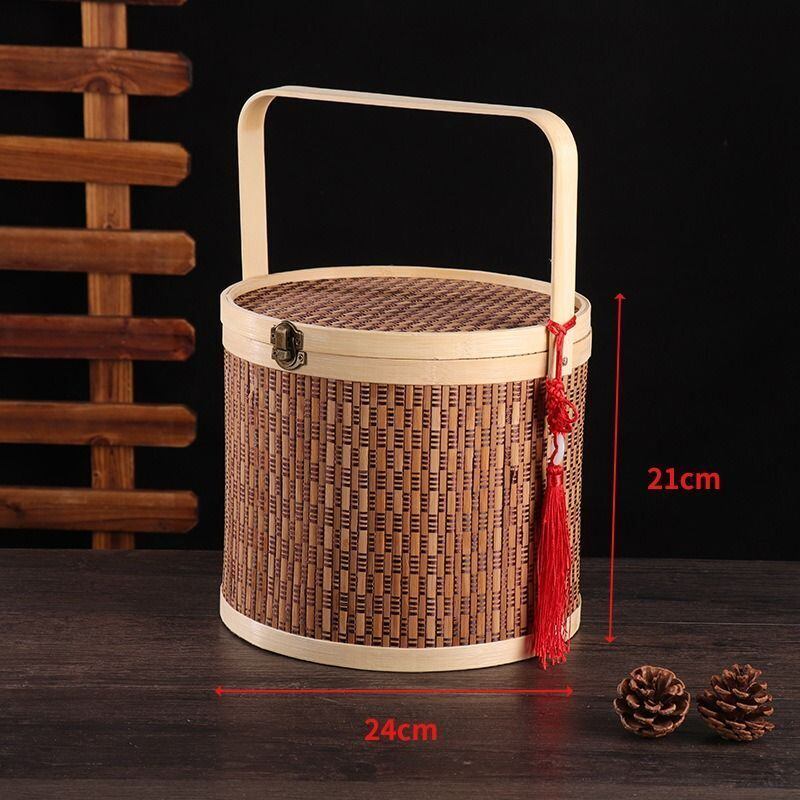 この竹製のバスケットは、ナチュラルな竹素材が使われており、家庭用やピクニックでの持ち運びに最適です。シンプルでエレガントなデザインが特徴で、食卓やイベントでデザートや小物を華やかに演出します。贈り物としても喜ばれるアイテムです。