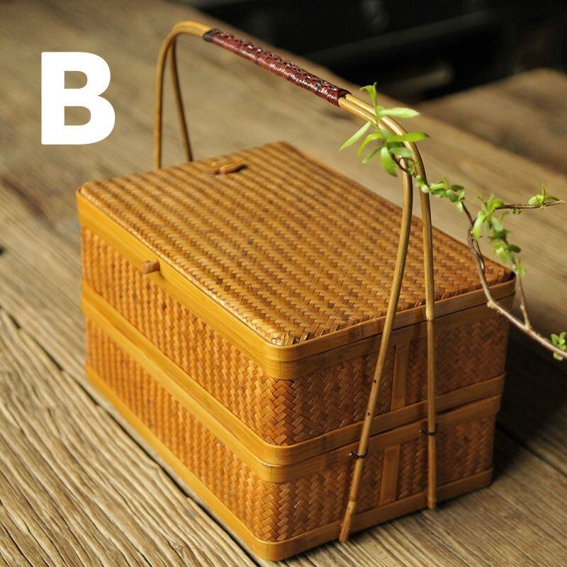 こちらは竹製の蓋付き収納カゴ・バスケットです。自然な竹の風合いが美しいアイテムで、様々な小物やフルーツを収納するのに最適です。蓋が付いているので、中身を保護しながら、見た目もスッキリと保つことができます。持ち運びや収納に便利です。キッチンやリビングなど、どんな場所でも活躍するおしゃれな収納ソリューションです。