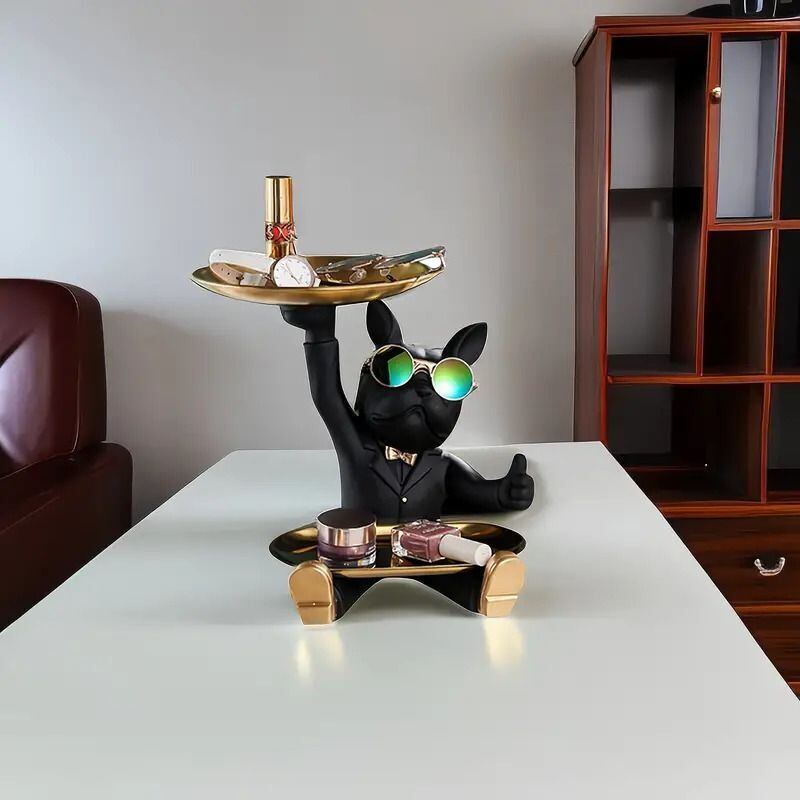 置物 犬 犬の像 ブルドック いぬ 彫刻 トレイ ホーム 玄関 リビング テーブルデコレーション 飾り 装飾品 かわいい 黒 ブラック クリスマスプレゼント 誕生日 ギフト | Renatus インテリア 家具専門店