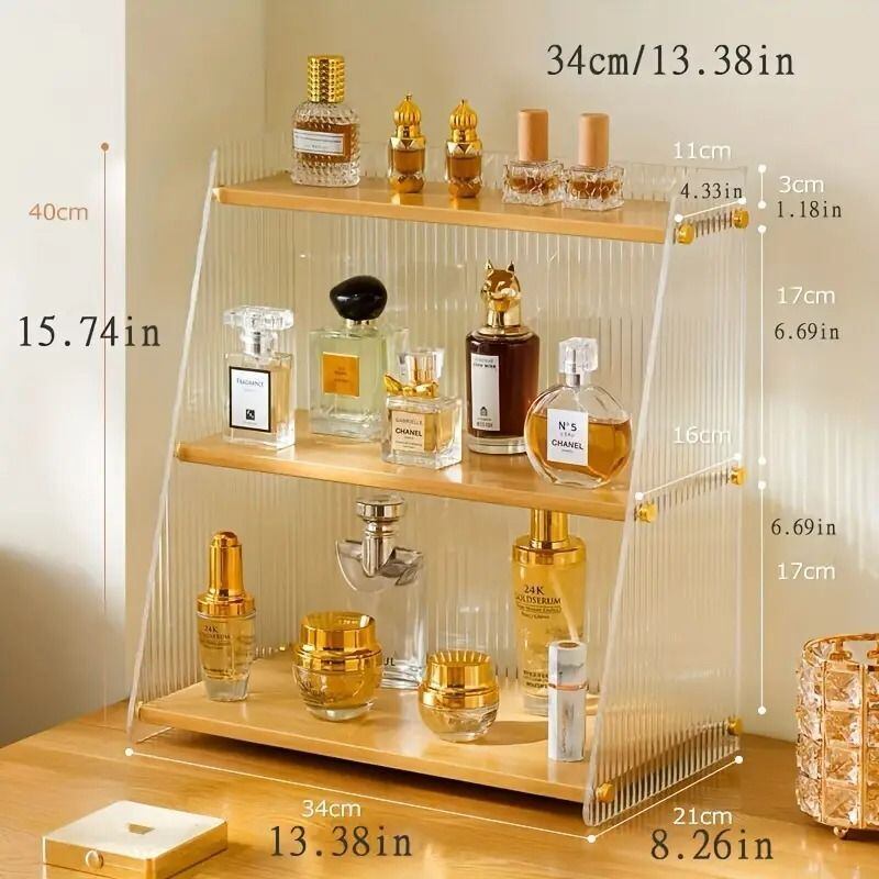 この装飾棚は、フィギュアやアクセサリー、香水を美しくディスプレイできるスタイリッシュなアイテムです。