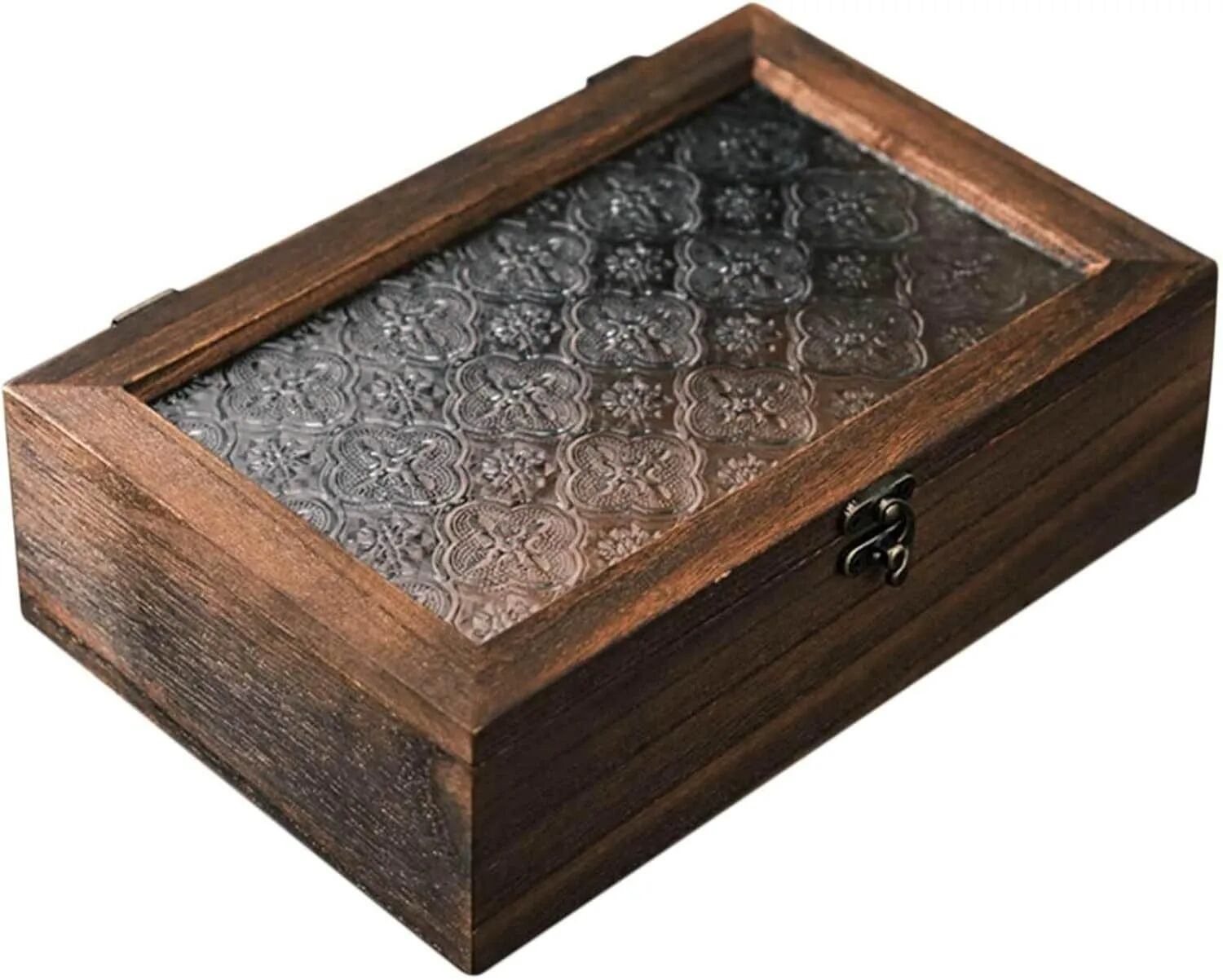 小さな木箱 ガラス ギフトボックス レトロ 木製 収納ボックス 卓上 ジュエリーボックス アクセサリー 小物入れ 蓋付き シンプル ヴィンテージ レトロ モダン おしゃれ 可愛い ギフト プレゼント ユニセックス (Mサイズ) | Renatus インテリア 家具専門店