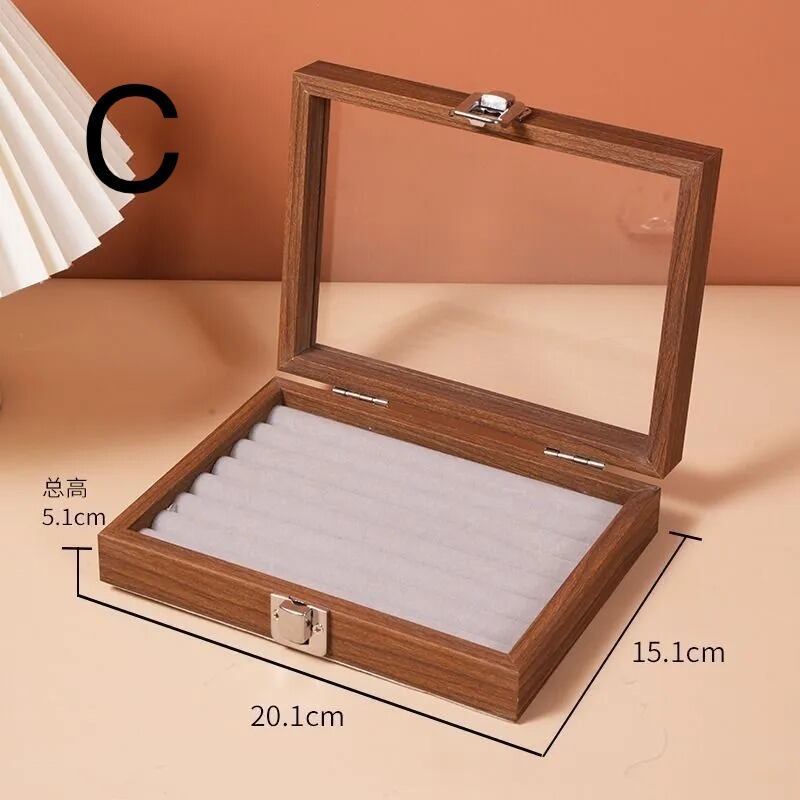 こちらのウォールナット製アクセサリーボックスは、ガラス付きの蓋が特徴で、