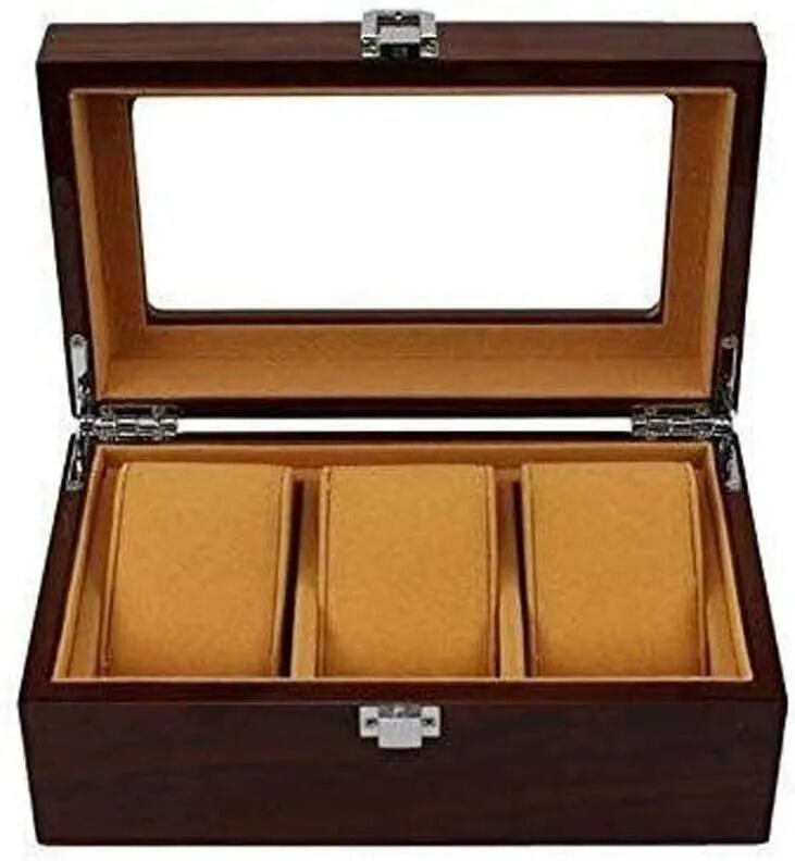 洗練されたクラシックなブラウンの木製時計ボックスは、3スロットの設計で腕時計を優雅に収納し、ディスプレイします。モダンなデザインと高級感あふれる仕上げが、どんなインテリアにもぴったり。ガラスのサンルーフが付いており、大切な時計を埃から守りながら美しく展示します。