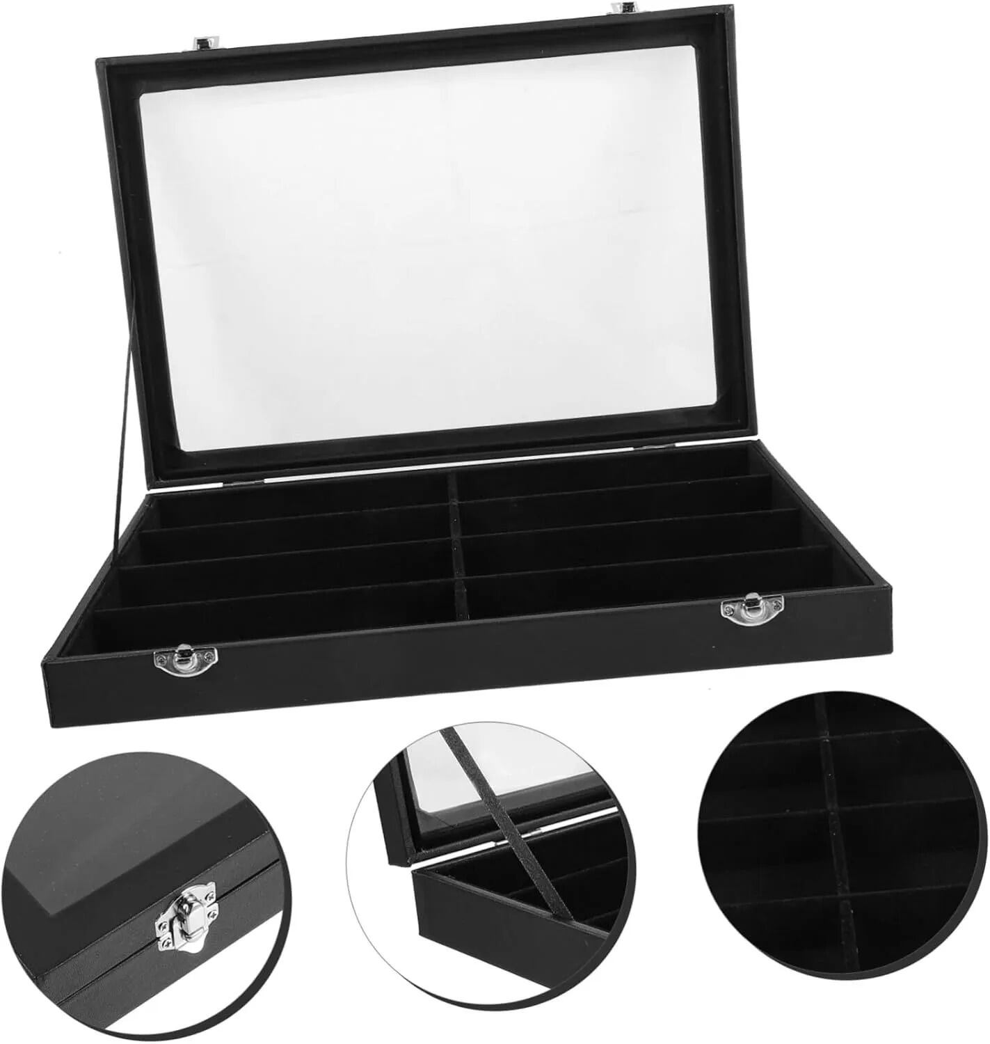 大容量 黒革 ダーク 黒 ジュエリーボックス ジュエリー収納 ボックス 透明 リング ブレスレット ディスプレイボックス ロック付き ユニセックス 男性用 女性用 ギフト | Renatus インテリア 家具専門店