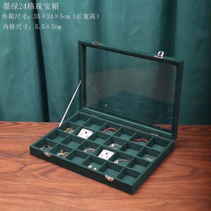 ジュエリーボックス アクセサリーボックス 収納 アクセサリー コレクションボックス ジュエリーケース 透明 リング ブレスレット ディスプレイケース グリーン 緑 大容量 コンパクト 蓋付き ガラス ロック付き 高級感 24グリッド 30グリッド ギフト | Renatus インテリア 家具専門店