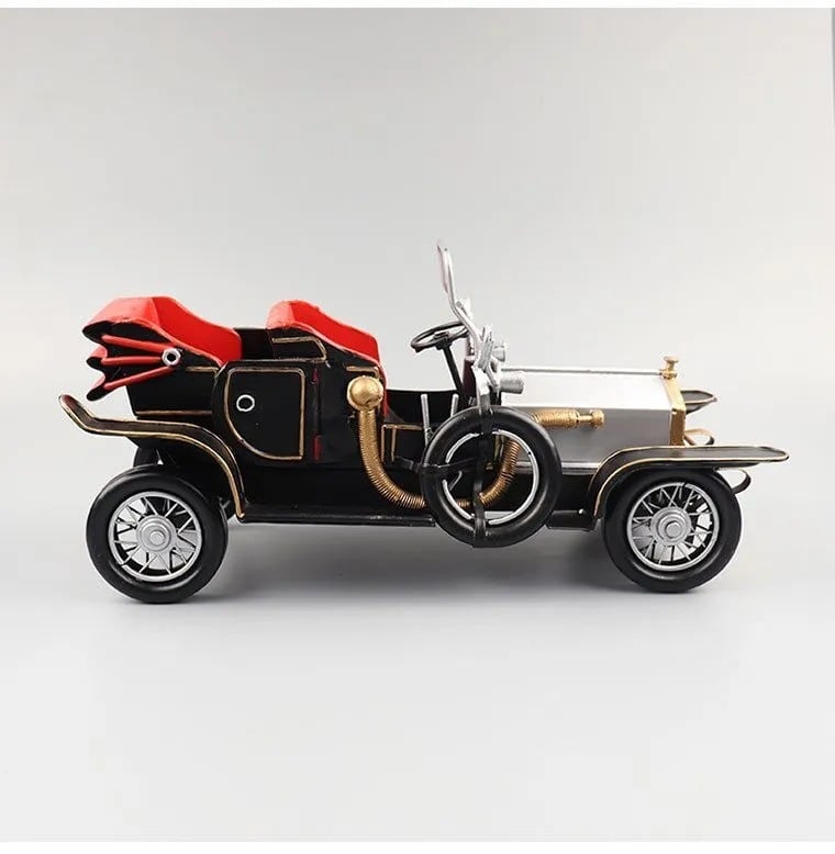 このクラシックカーの置物は、ブリキや鉄製で作られたレトロなモデルです。赤と黒の色合いが特徴で、アイアン素材の工芸品として、部屋や事務机、本棚、リビングルーム、キッズルームなどに飾るのにぴったりです。ヴィンテージ感のあるデザインは、コレクションアイテムや装飾品としても最適で、どこに置いても空間をおしゃれに演出します。