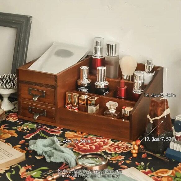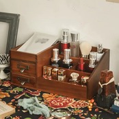 このメイクアップ収納棚は、ナチュラルな木の質感が魅力で、どんなインテリアにもマッチします。