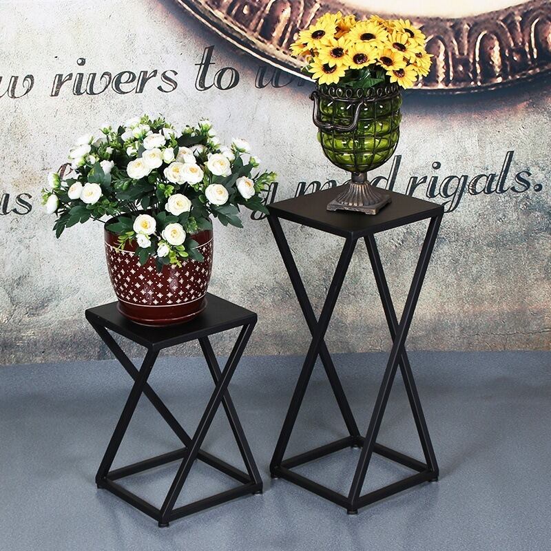 この正方形のフラワースタンドは、ミニマリストデザインが魅力の小型テーブルで、ブラックカラーがシックで落ち着いた雰囲気を演出します。