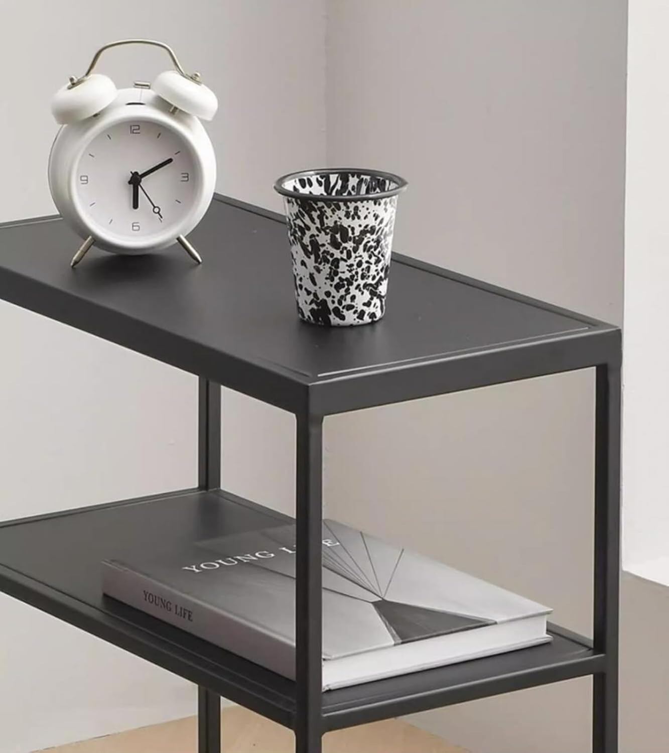 このおしゃれな2段サイドテーブルは、スリムなが特徴で、北欧風スタイリッシュなデザインな空間を演出します。 高さ55cm、幅55cmと、ベッドサイドやリビングでの使用にぴったりのサイズ感です。ステンレスフレームが洗練された印象を与え、耐久性も抜群。2段構造により、上段にはランプや小物、下段には本や雑誌などを置ける便利な収納スペースを確保しています。