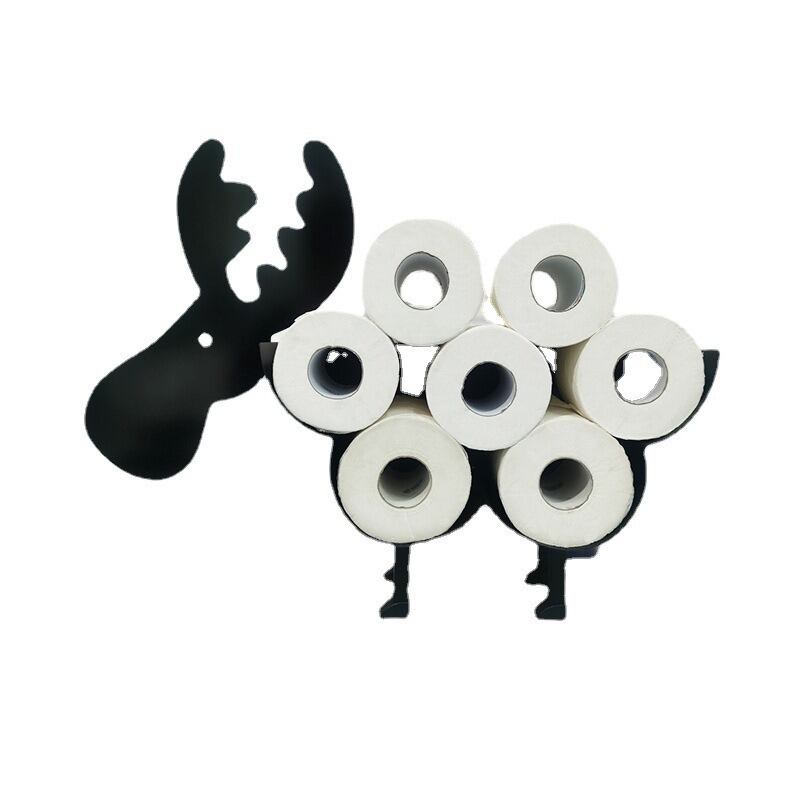 ユニークな動物の装飾が魅力のトイレットペーパーホルダーで、トナカイをモチーフにしたデザインが、トイレ空間を個性的で楽しい雰囲気に変えてくれます。ブラックカラーのシンプルかつ高級感あるデザインは、カフェやショップなどの店舗にもぴったり。壁収納バスケットとしてティッシュオーガナイザー機能も備え、実用性と装飾性を考慮した一品です。予備のトイレットペーパーロールや小物も収納できるので、見た目もスッキリしています。