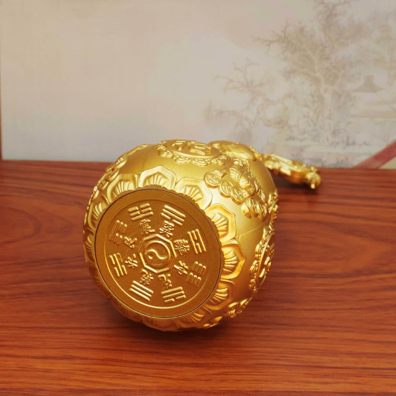 このゴールドのひょうたん型オブジェは、風水でラッキーアイテムとして広く愛されています。 置物としてルームや玄関に飾るだけでなく、ペンダントとしても活用可能なリビングデザインで、多用途にお使いいただけます。象徴であるひょうたんが、健康運や金運を引き寄せられると、ゴージャスな輝きが空間に華やかさを添えます。 装飾やギフトとしても最適で、大切な人へのプレゼントにもぴったりの一品です。